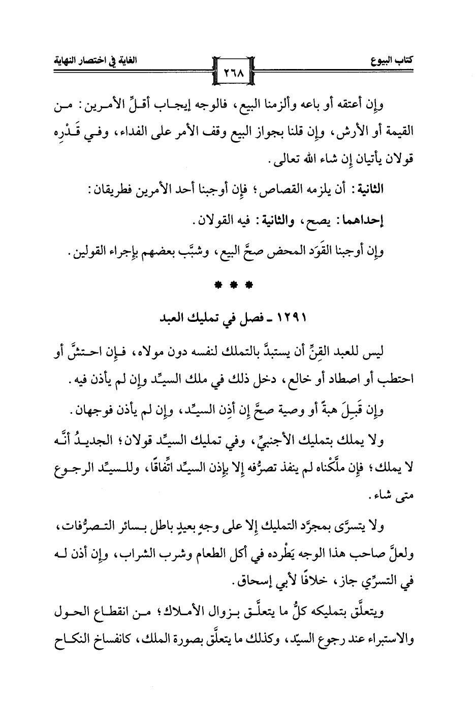 ويتعلَّق بتمليكه كلُّ ما يتعلَّق بزوال الأملاك؛ من انقطاع الحول والاستبراء عند رجوع السيّد، وكذلك ما يتعلَّق بصورة الملك، كانفساخ النكاح