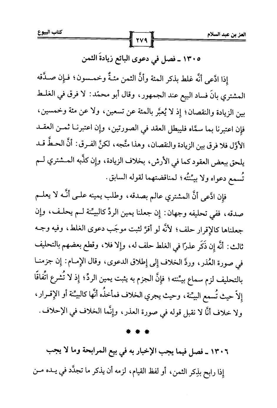 1305 - فصل في دعوى البائع زيادةَ الثمن