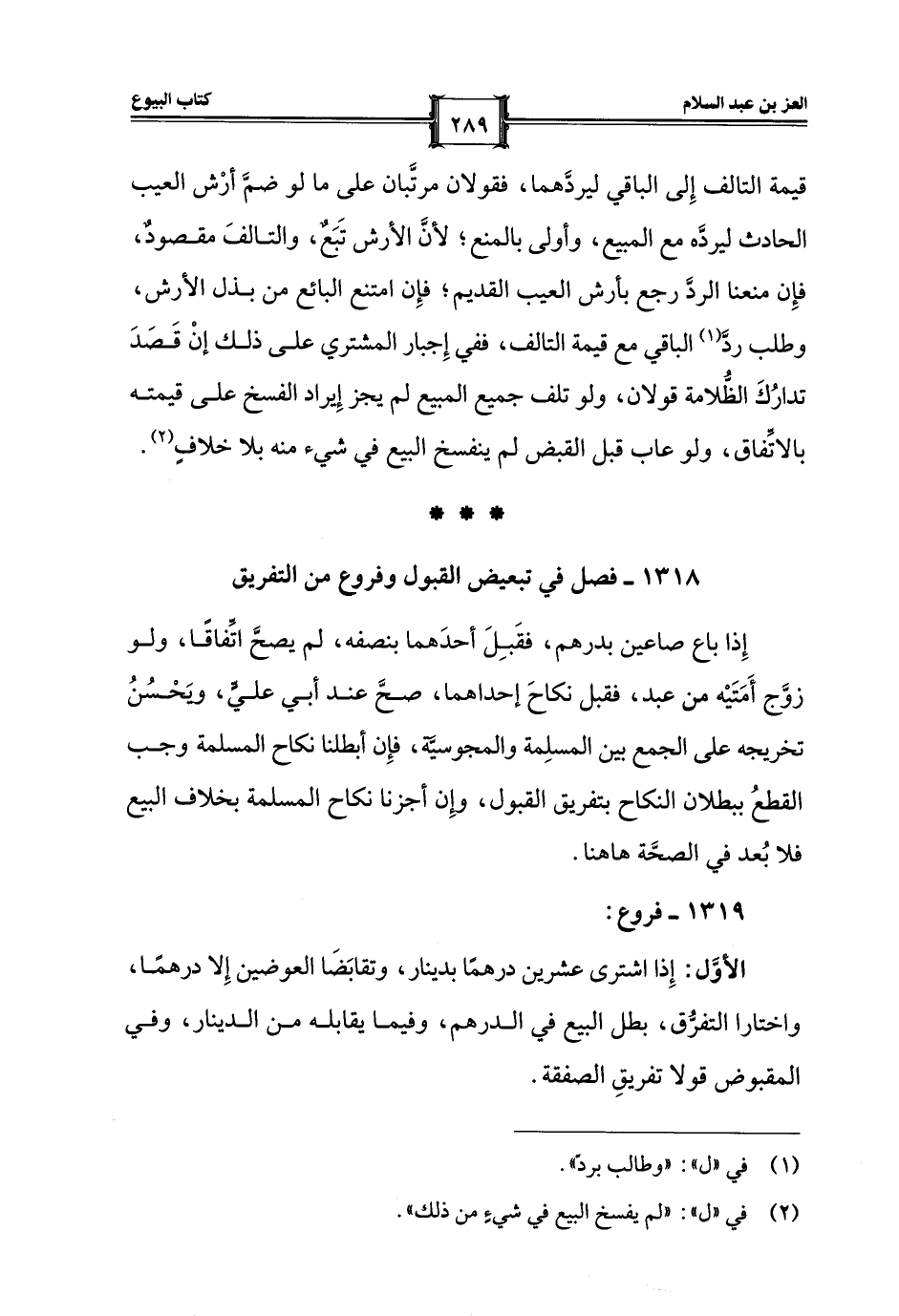 1318 - فصل في تبعيض القبول وفروع من التفريق