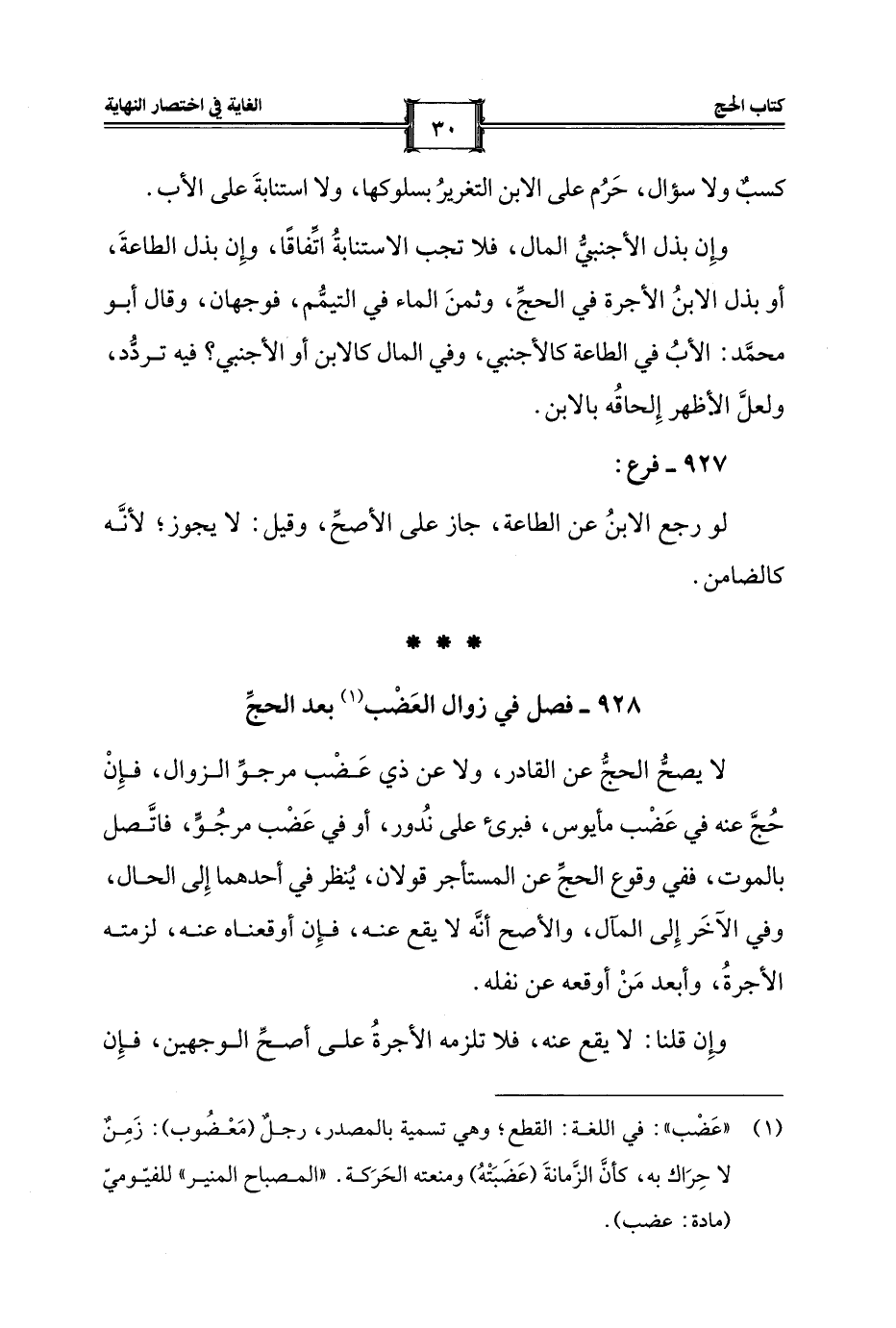 928 - فصل في زوال العَضْب (¬1) بعد الحجِّ