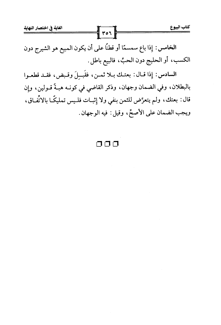 السادس: إِذا قال: بعتك بلا ثمن، فقَبِلَ وقبض، فقد قطعوا بالبطلان، وفي الضمان وجهان، وذكر القاضي في كونه هبةً قولين، وإِن قال: بعتك، ولم يتعرَّض للثمن بنفي ولا إِثبات فليس تمليكًا بالاتِّفاق، ويجب الضمان على الأصحِّ، وقيل: فيه الوجهان.