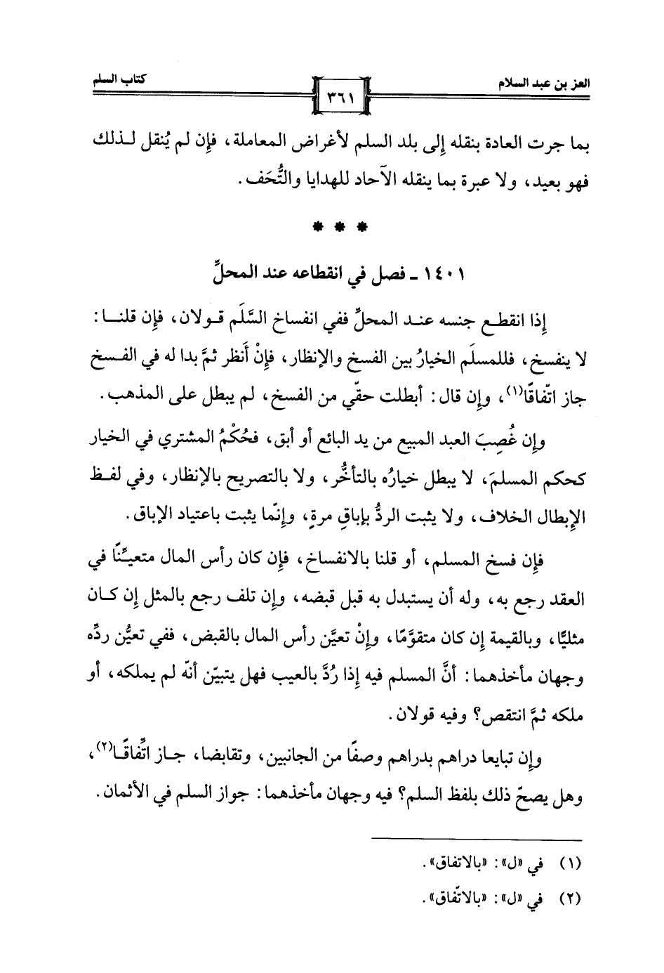 1401 - فصل في انقطاعه عند المحلِّ