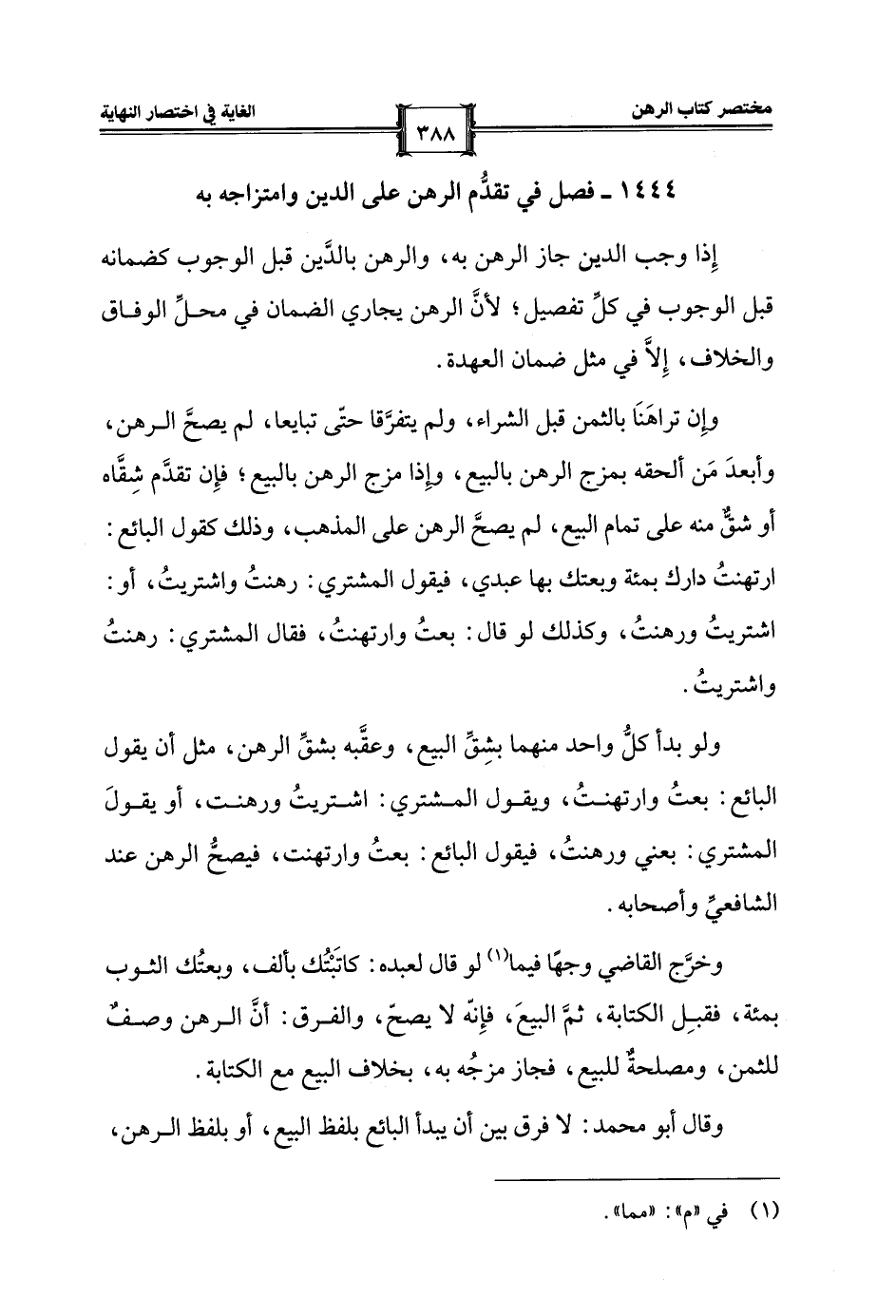 1444 - فصل في تقدُّم الرهن على الدين وامتزاجه به