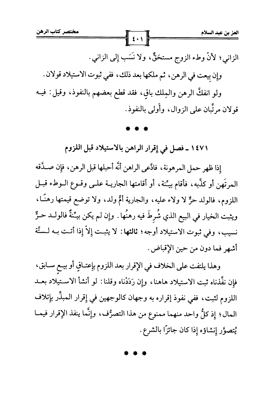 1471 - فصل في إِقرار الراهن بالاستيلاد قبل اللزوم