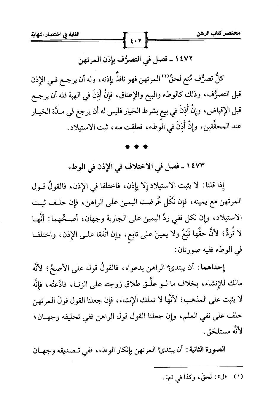 1472 - فصل في التصرُّف بإِذن المرتهن