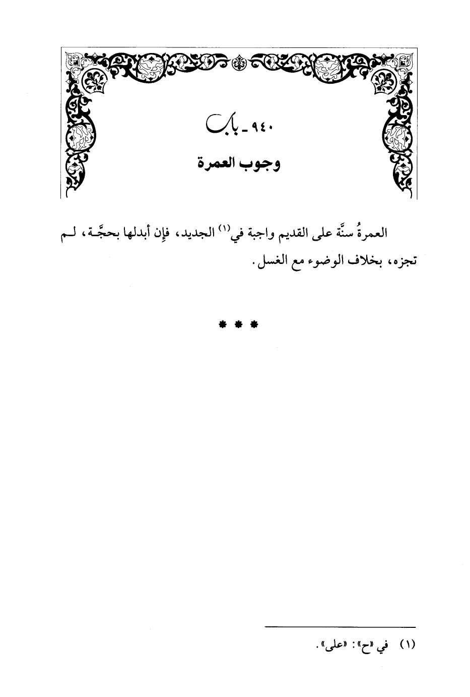 العمرةُ سنَّة على القديم واجبة في (¬1) الجديد، فإِن أبدلها بحجَّة، لم تجزه، بخلاف الوضوء مع الغسل.