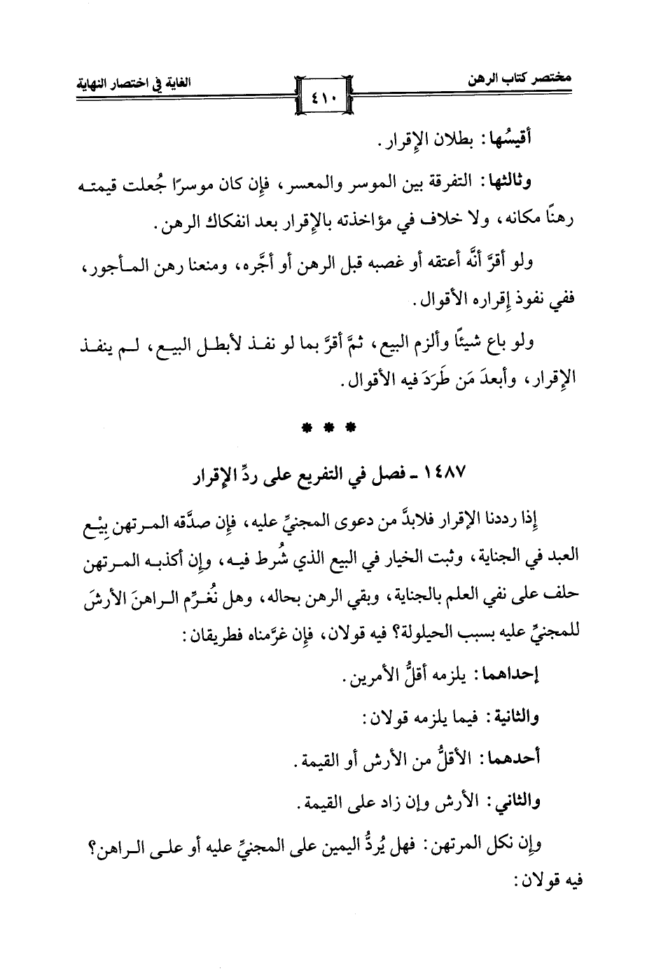 1487 - فصل في التفريع على ردِّ الإقرار