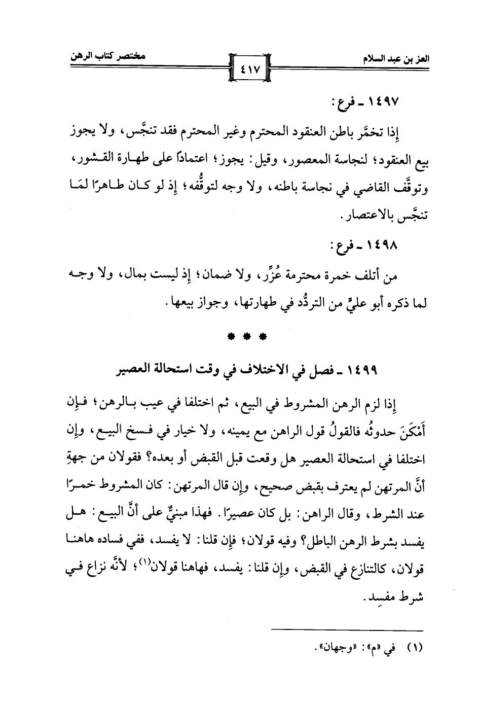 1499 - فصل في الاختلاف في وقت استحالة العصير