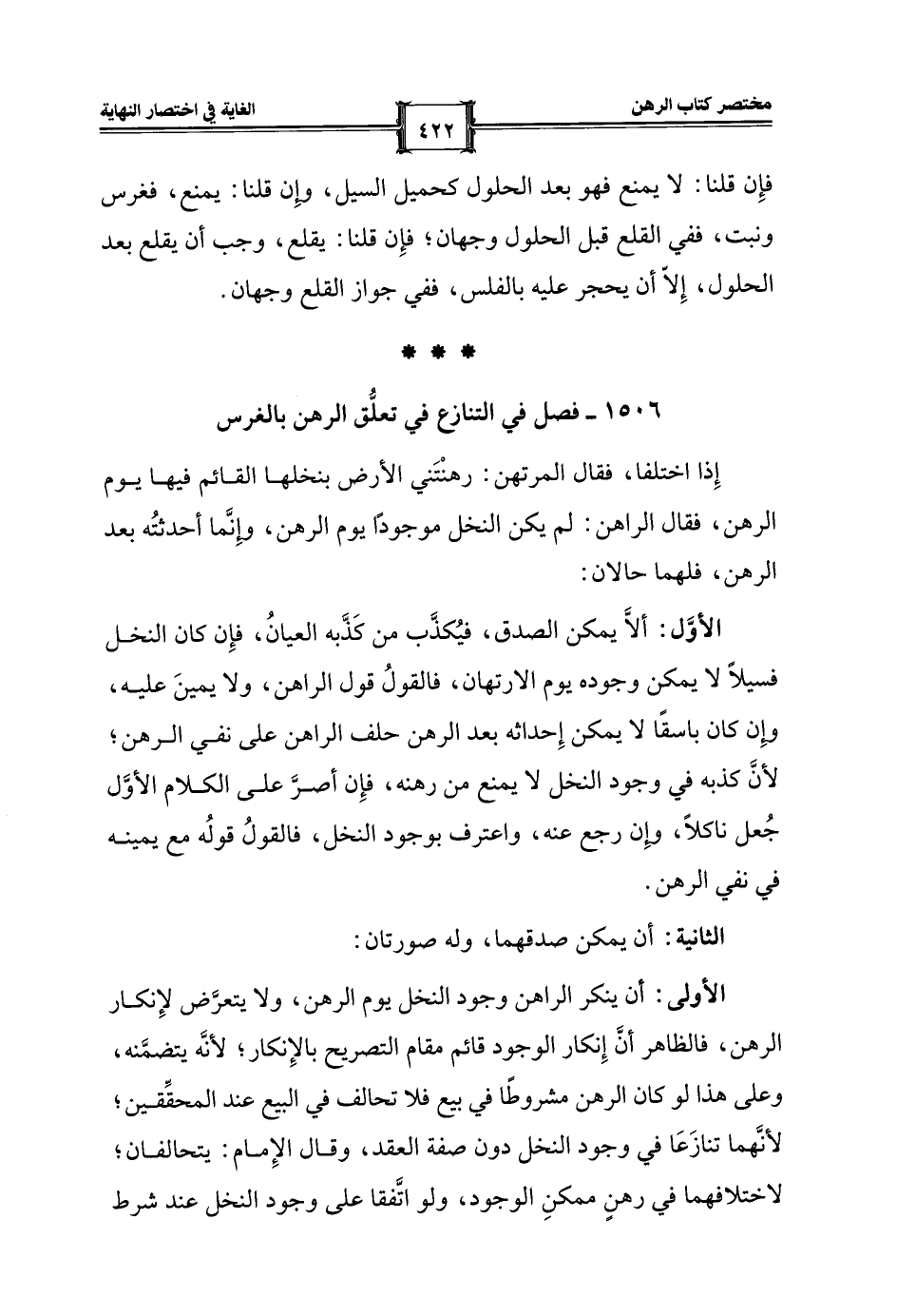 1506 - فصل في التنازع في تعلُّق الرهن بالغرس