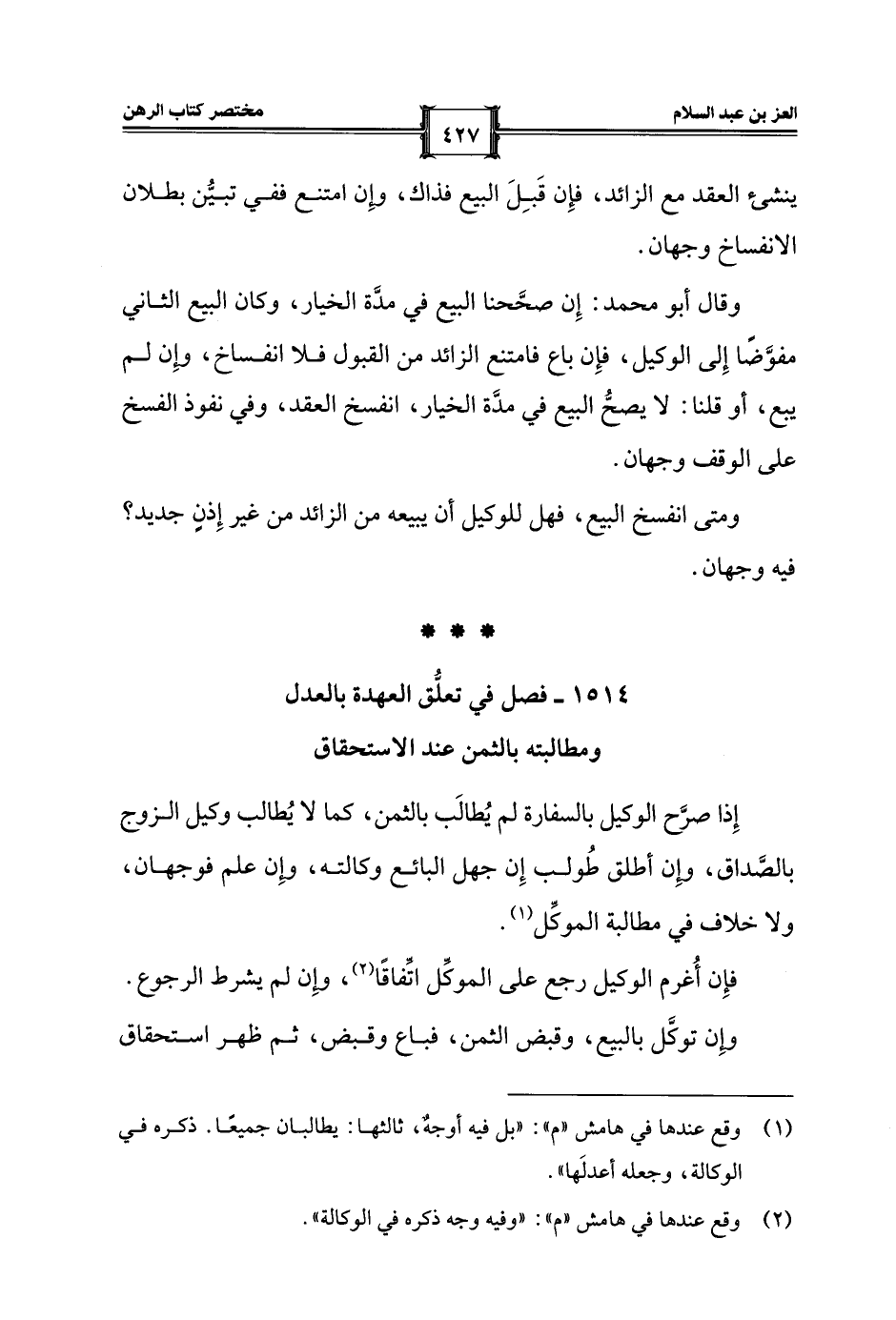 1514 - فصل في تعلُّق العهدة بالعدل ومطالبته بالثمن عند الاستحقاق