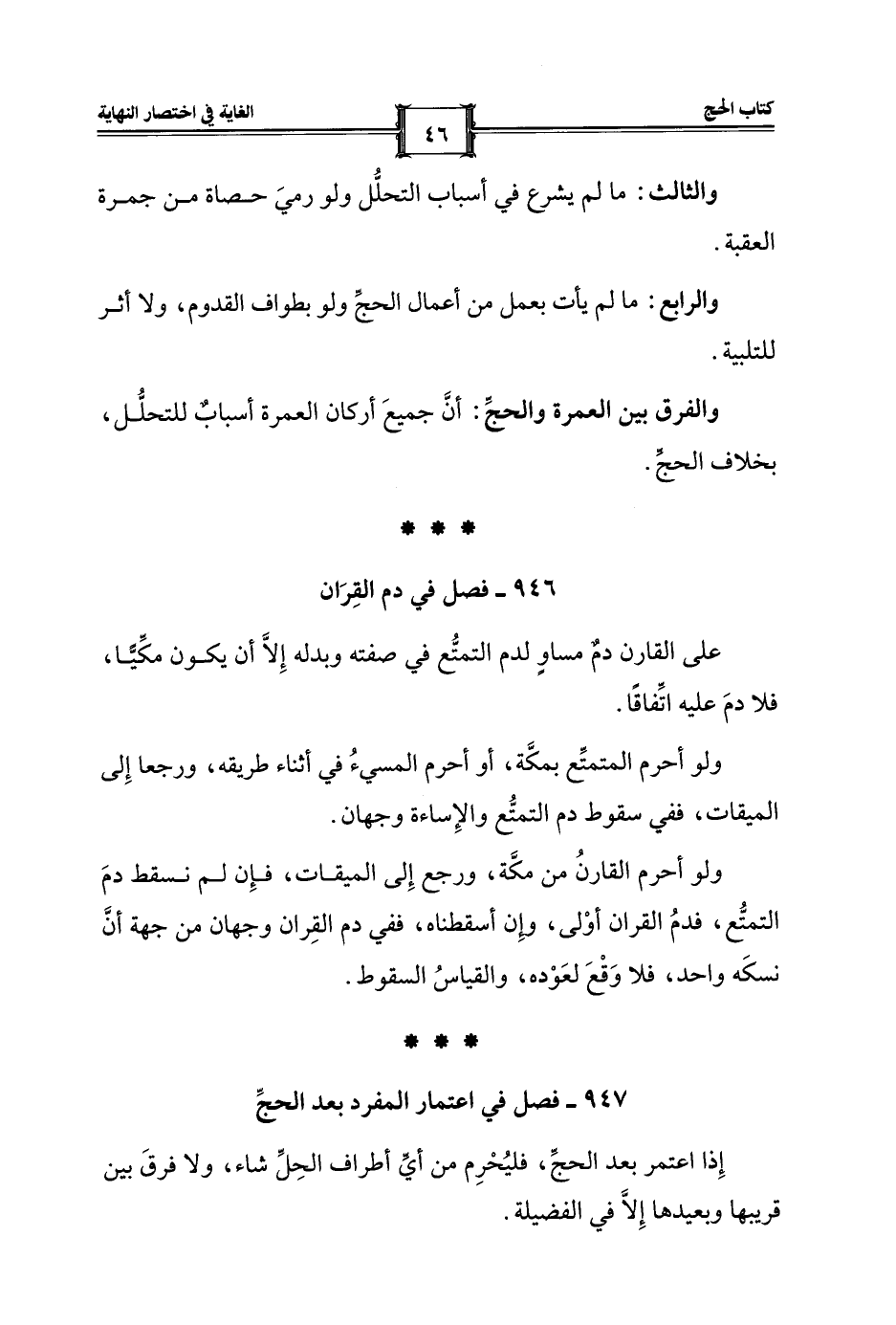والفرق بين العمرة والحجِّ: أنَّ جميعَ أركان العمرة أسبابٌ للتحلُّل، بخلاف الحجِّ.
