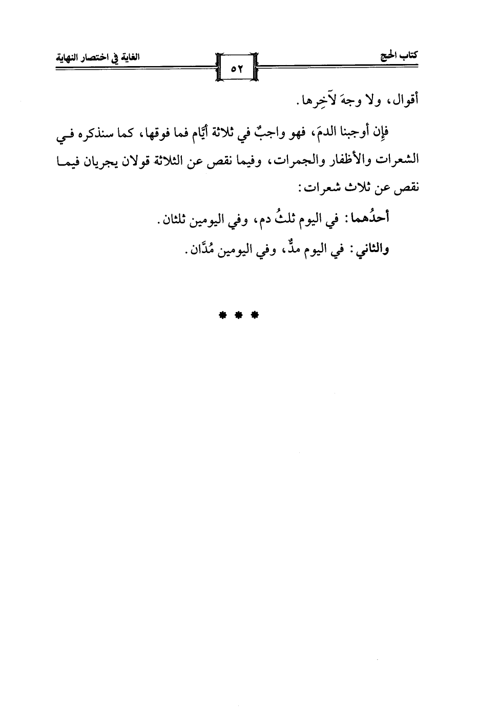فإِن أوجبنا الدمَ، فهو واجبٌ في ثلاثة أيَّام فما فوقها، كما سنذكره في الشعرات والأظفار والجمرات، وفيما نقص عن الثلاثة قولان يجريان فيما نقص عن ثلاث شعرات:
