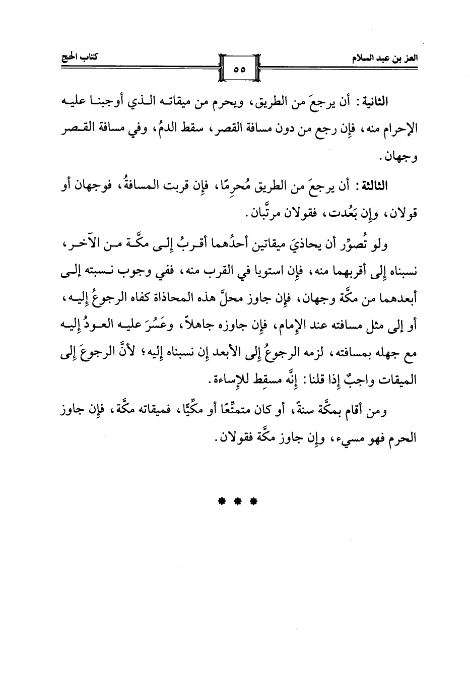 الثانية: أن يرجعَ من الطريق، ويحرم من ميقاته الذي أوجبنا عليه الإحرام منه، فإِن رجع من دون مسافة القصر، سقط الدمُ، وفي مسافة القصر وجهان.