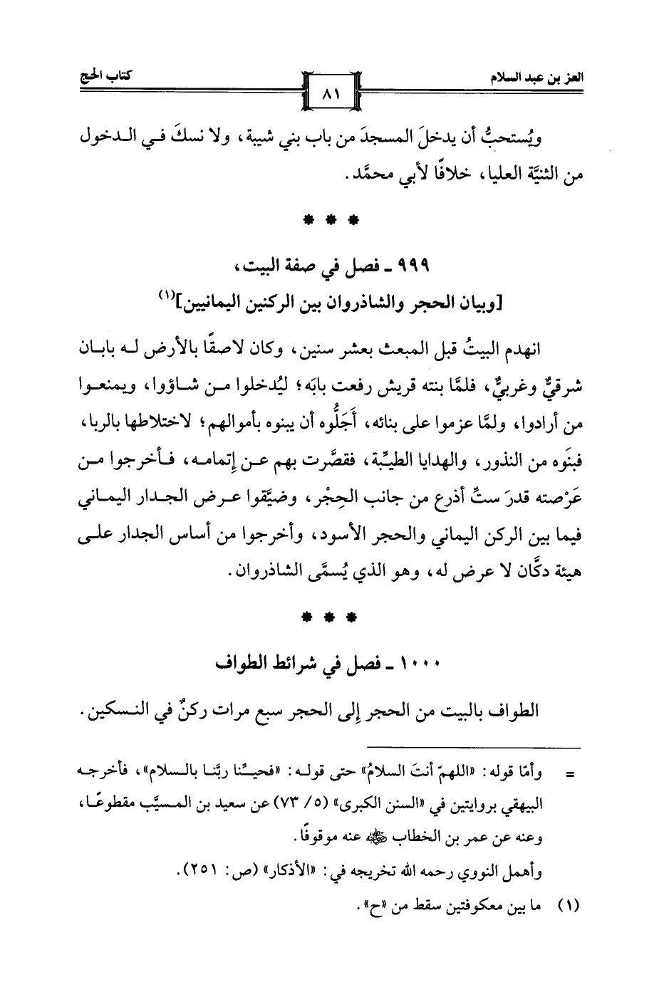 999 - فصل في صفة البيت، [وبيان الحجر والشاذروان بين الركنين اليمانيين] (¬1)