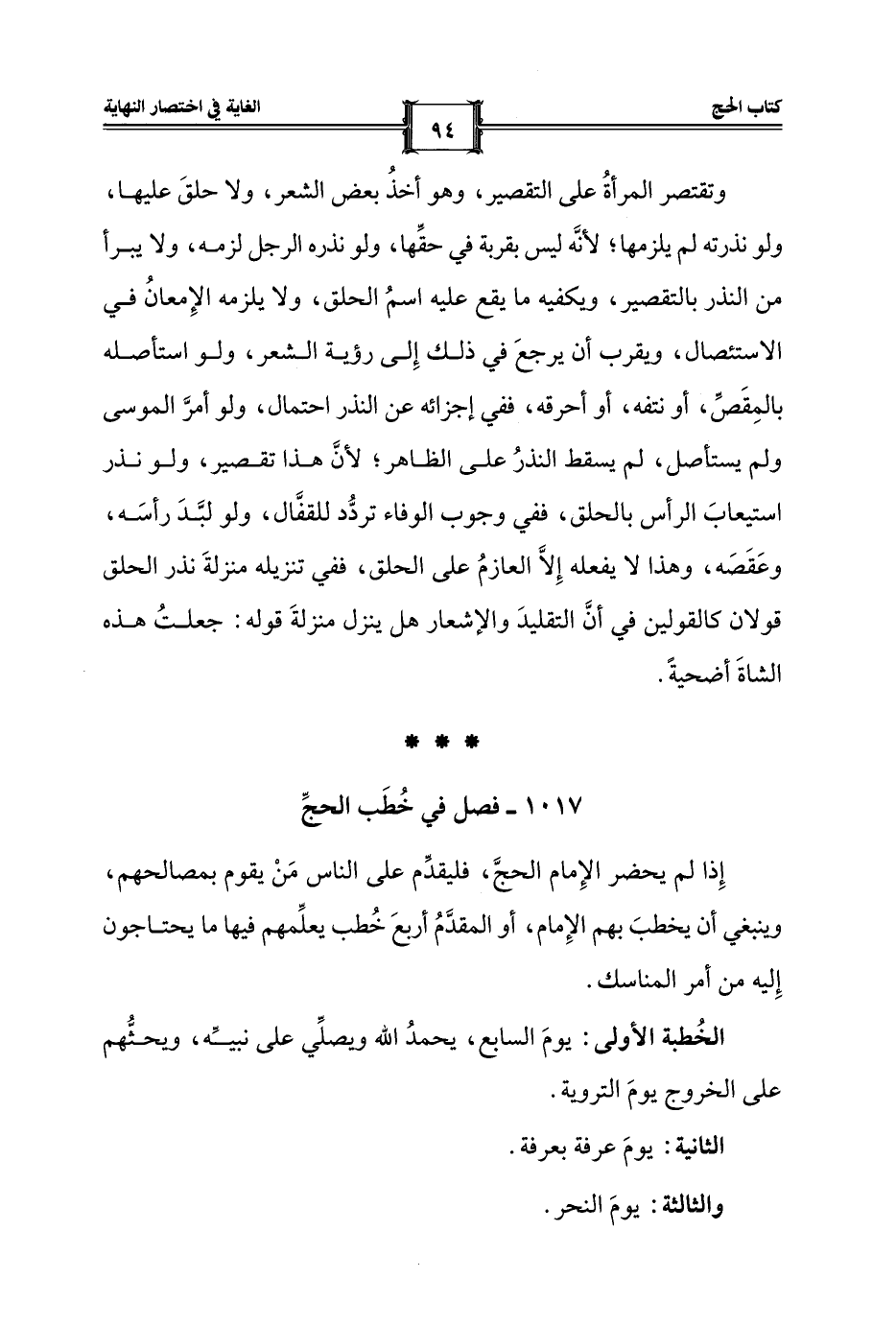 1017 - فصل في خُطَب الحجِّ
