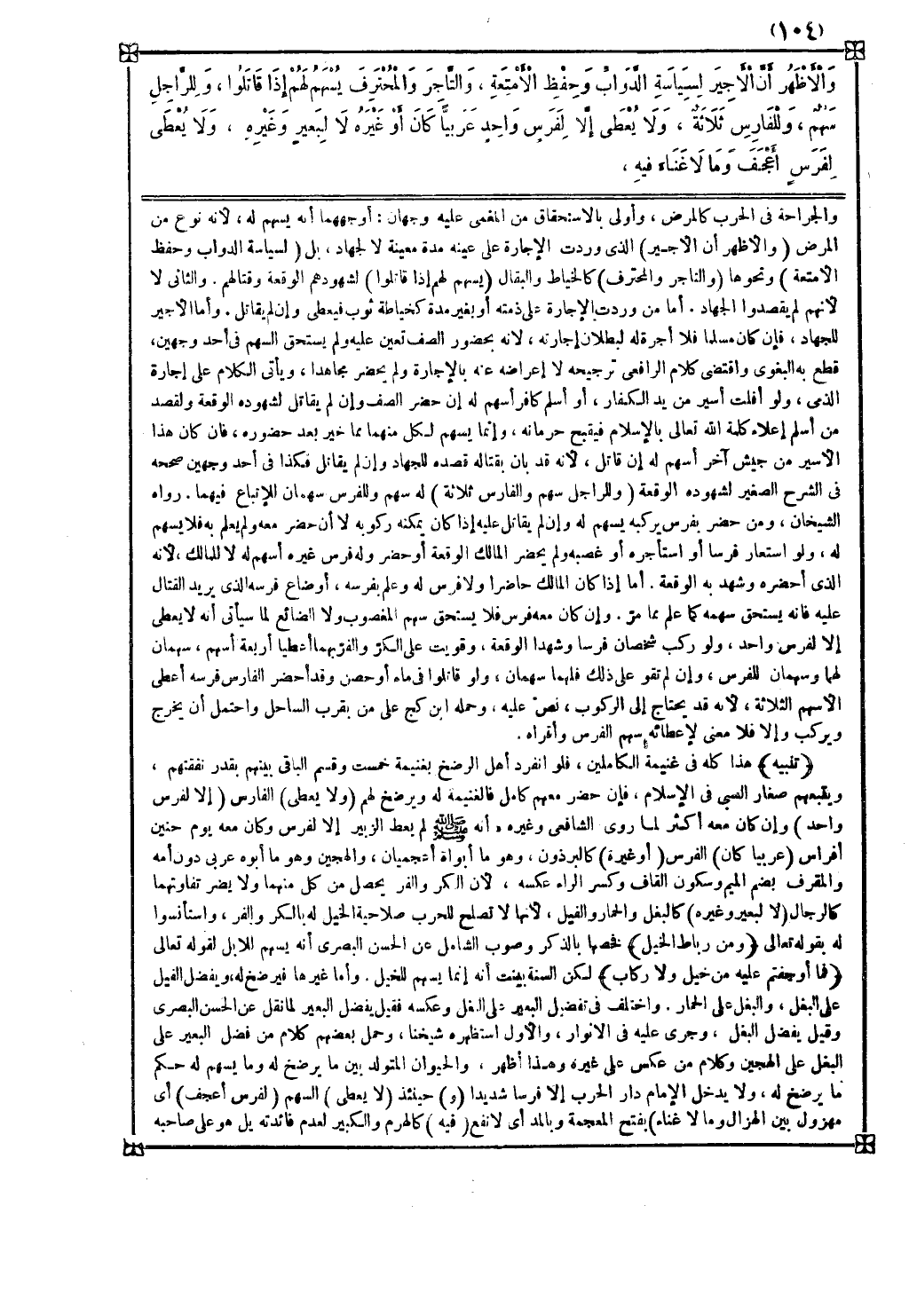 ( عربيا كان ) الفرس ( أو غيره ) كالبرذون وهو ما أبواه أعجميان والهجين وهو ما أبوه عربي دون أمه والمقرف بضم الميم وسكون القاف وكسر الراء عكسه لأن الكر والفر يحصل من كل منهما ولا يضر تفاوتهما كالرجال