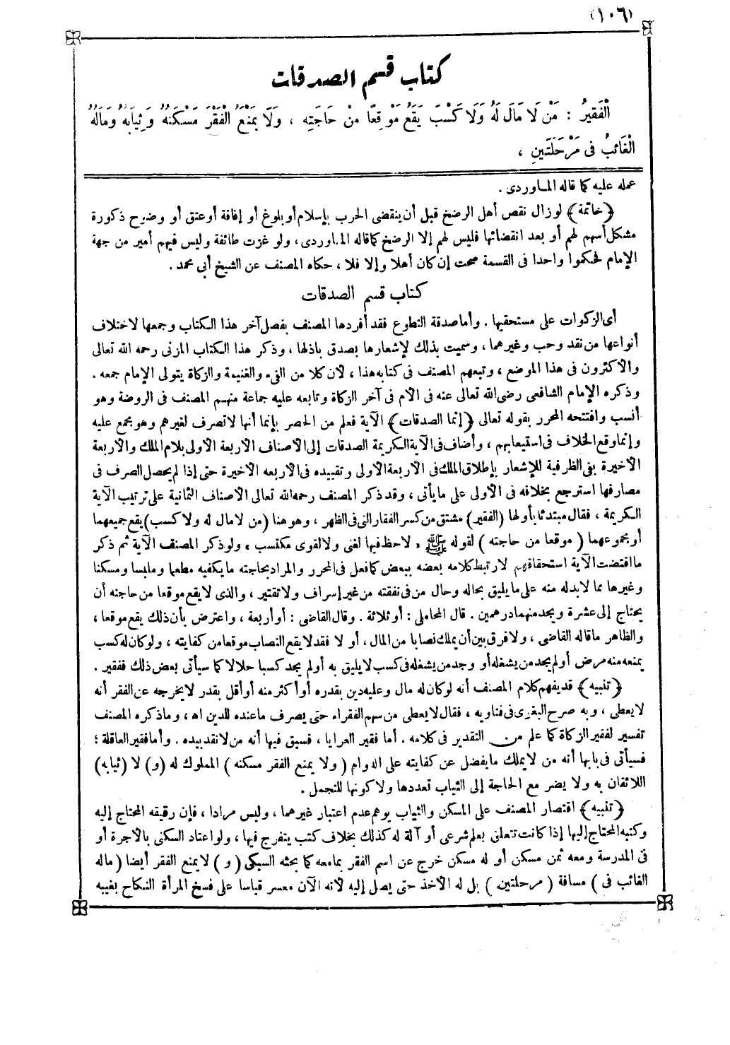 وأضاف في الآية الكريمة الصدقات إلى الأصناف الأربعة الأولى بلام الملك والأربعة الأخيرة ب فيالظرفية للإشعار بإطلاق الملك في الأربعة الأولى وتقييده في الأربعة الأخيرة حتى إذا لم يحصل الصرف في مصارفها استرجع بخلافه في الأولى على ما يأتي