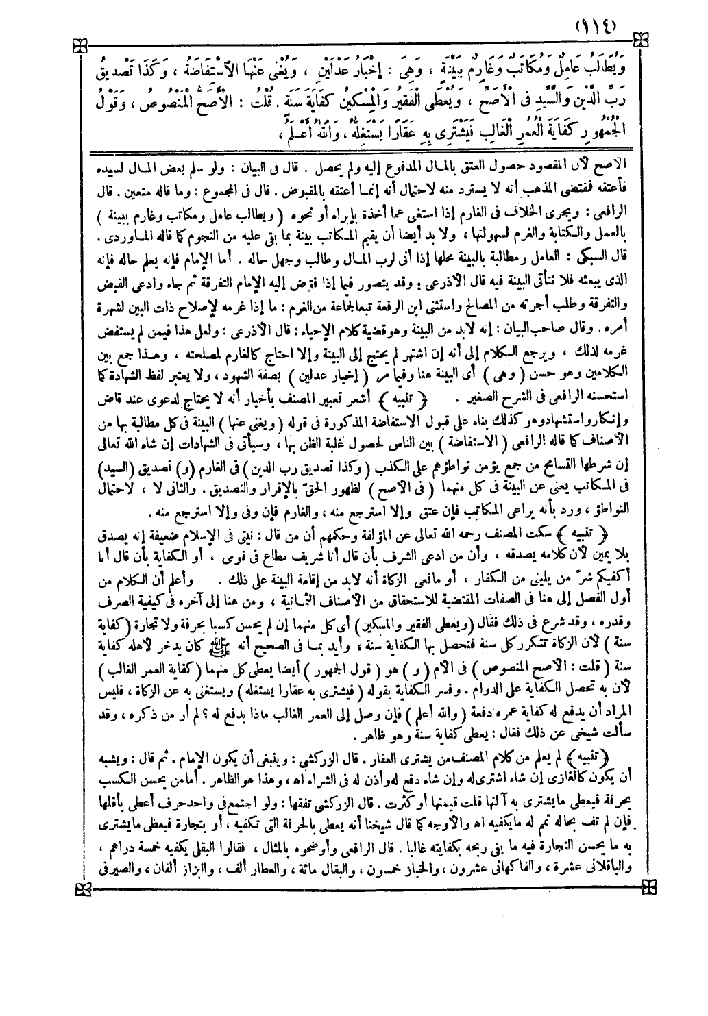 واعلم أن الكلام من أول الفصل إلى هنا في الصفات المقتضية للاستحقاق من الأصناف الثمانية ومن هنا إلى آخره في كيفية الصرف وقدره وقد شرع في ذلك فقال ( ويعطى الفقير والمسكين ) أي كل منهما إن لم يحسن كسبا بحرفة ولا تجارة ( كفاية سنة ) لأن الزكاة تتكرر كل سنة فتحصل بها الكفاية سنة وأيد بما في الصحيح أنه صلى الله عليه وسلم كان يدخر لأهله كفاية سنة ( قلت الأصح المنصوص ) في الأم ( و ) هو ( قول الجمهور ) أيضا يعطى كل منهما ( كفاية العمر الغالب ) لأن به تحصل الكفاية على الدوام