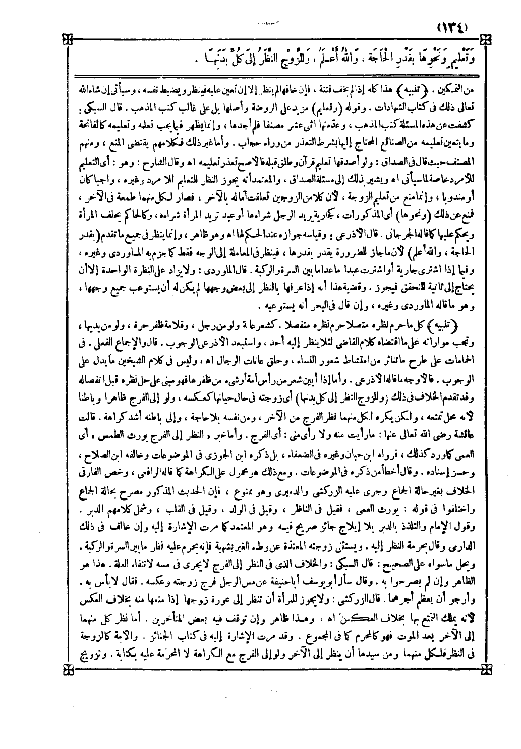 وهو ظاهر وإنما ينظر في جميع ما تقدم ( بقدر الحاجة والله أعلم ) لأن ما جاز للضرورة يقدر بقدرها فينظر في المعاملة إلى الوجه فقط كما جزم به الماوردي وغيره وفيما إذا اشترى جارية أو اشترت عبدا ما عدا ما بين السرة والركبة