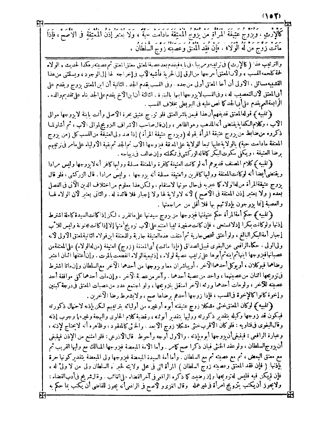 قال الزركشي فلو قال يزوج عتيقة المرأة من له الولاء كما عبر به في حال موتها لاستقام ولكن هذا معلوم من اختلاف الدين الآتي في الفصل بعده