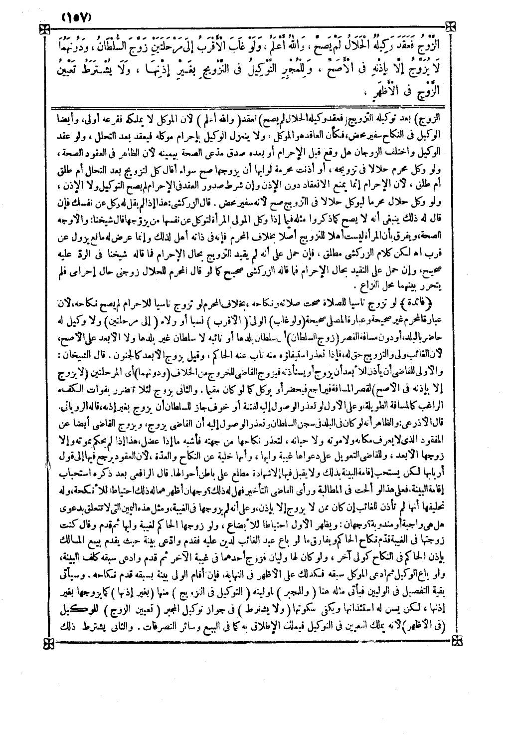 لكن كلام الزركشي مطلق فإن حمل على أنه لم يقيد التزويج بحال الإحرام فما قاله شيخنا في الرد عليه صحيح وإن حمل على التقيد بحال الإحرام فما قاله الزركشي صحيح كما لو قال المحرم للحلال زوجني حال إحرامي فلم يتحرر بينهما محل النزاع