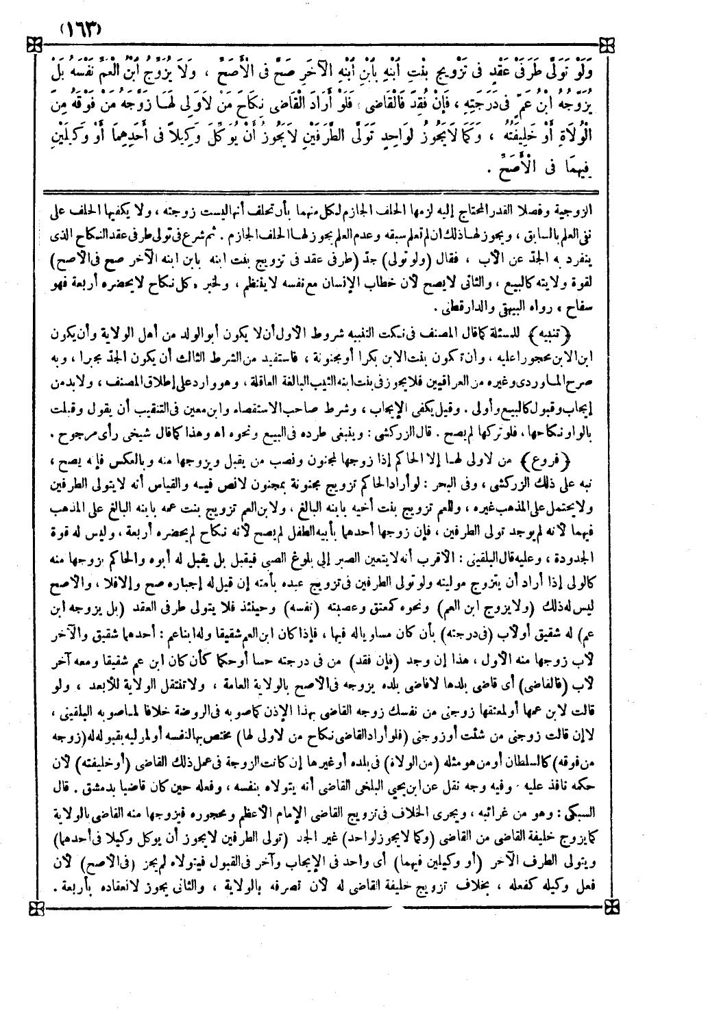 فروع من لا ولي لها إلا الحاكم إذا زوجها لمجنون ونصب من يقبل ويزوجها منه وبالعكس فإنه يصح نبه على ذلك الزركشي