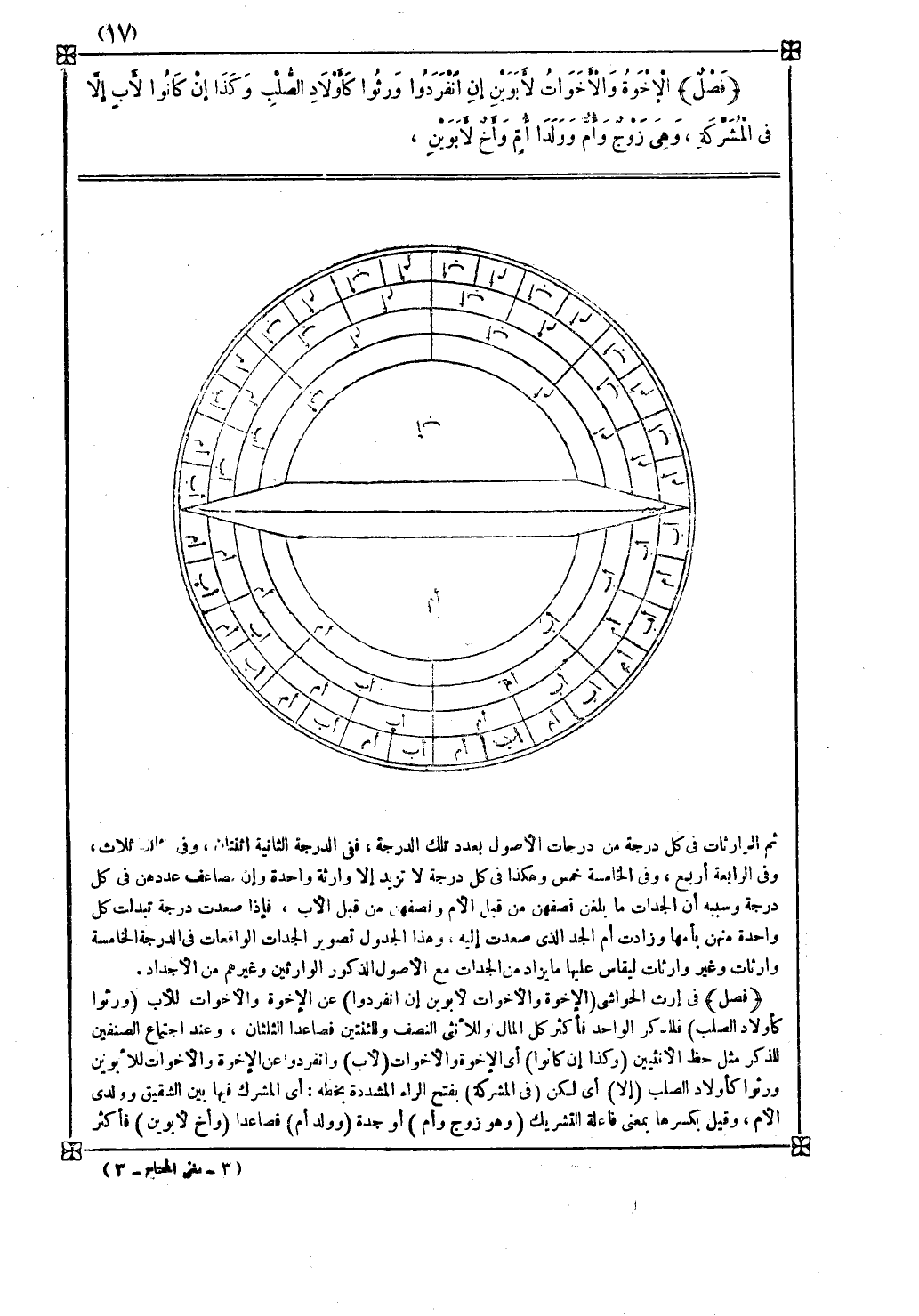 ثم الوارثات في كل درجة من درجات الأصول بعدد تلك الدرجة ففي الدرجة الثانية اثنتان وفي الثالثة ثلاث وفي الرابعة أربع وفي الخامسة خمس وهكذا في كل درجة لا تزيد إلا وارثة واحدة وإن تضاعف عددهن في كل درجة وسببه أن الجدات ما بلغن نصفهن من قبل الأم ونصفهن من قبل الأب فإذا صعدت درجة تبدلت كل واحدة منهن بأمها وزادت أم الجد الذي صعدت إليه وهذا الجدول تصوير الجدات الواقعات في الدرجة الخامسة وارثات وغير وارثات ليقاس عليها ما يزاد من الجدات مع الأصول الذكور الوارثين وغيرهم من الأجداد