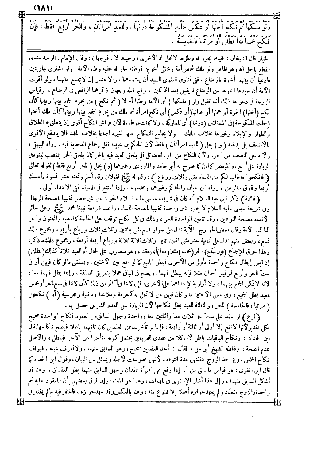 فائدة ذكر ابن عبد السلام أنه كان في شريعة موسى عليه السلام الجواز من غير حصر تغليبا لمصلحة الرجال وفي شريعة عيسى عليه السلام لا يجوز غير واحدة تغليبا لمصلحة النساء وراعت شريعة نبينا محمد صلى الله عليه وسلم وعلى سائر الأنبياء مصلحة النوعين