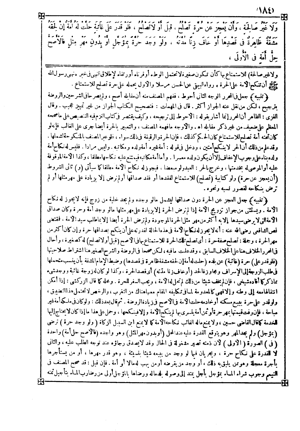تنبيه جعل العجز عن الحرة دون صداقها ليشمل ما لو وجده ولم يجد خلية من زوج فإنه لا يجوز له نكاح الأمة