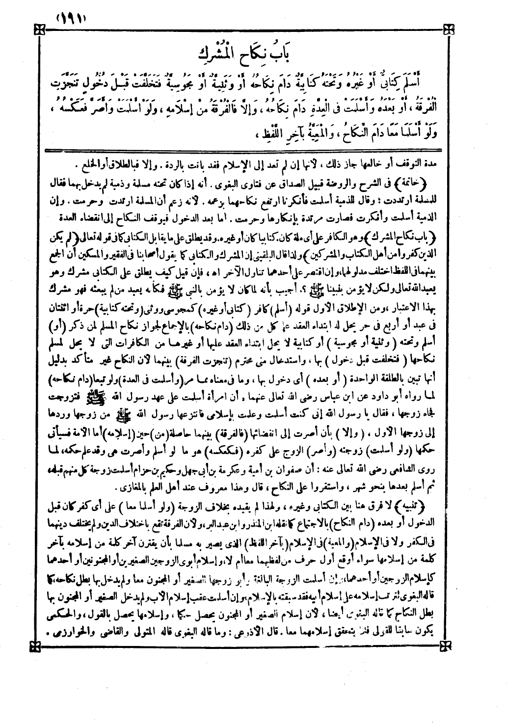 باب نكاح المشرك وهو الكافر على أي ملة كان كتابيا كان أو غيره