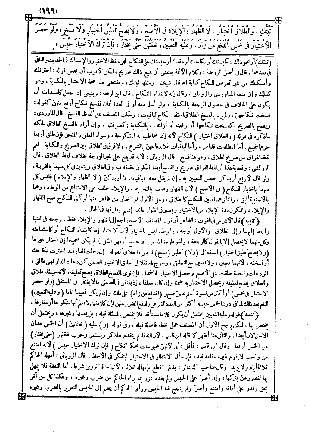 ولا فرق في الطلاق بين الصريح والكناية نعم لفظ الفراق من صريح الطلاق وهو هنا فسخ قال الروياني لأنه قد يقع على غير الزوجة بخلاف لفظ الطلاق