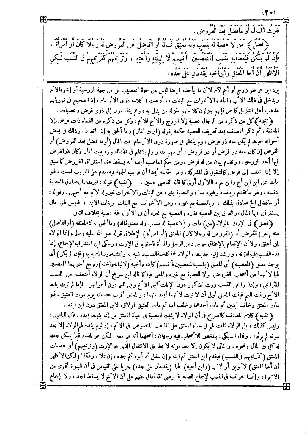 تنبيه قوله فيرث المال صادق بالعصبة بنفسه وهو ما تقدم وبنفسه وغيره معا والعصبة بغيره هن البنات والأخوات غير ولد الأم مع أخيهن