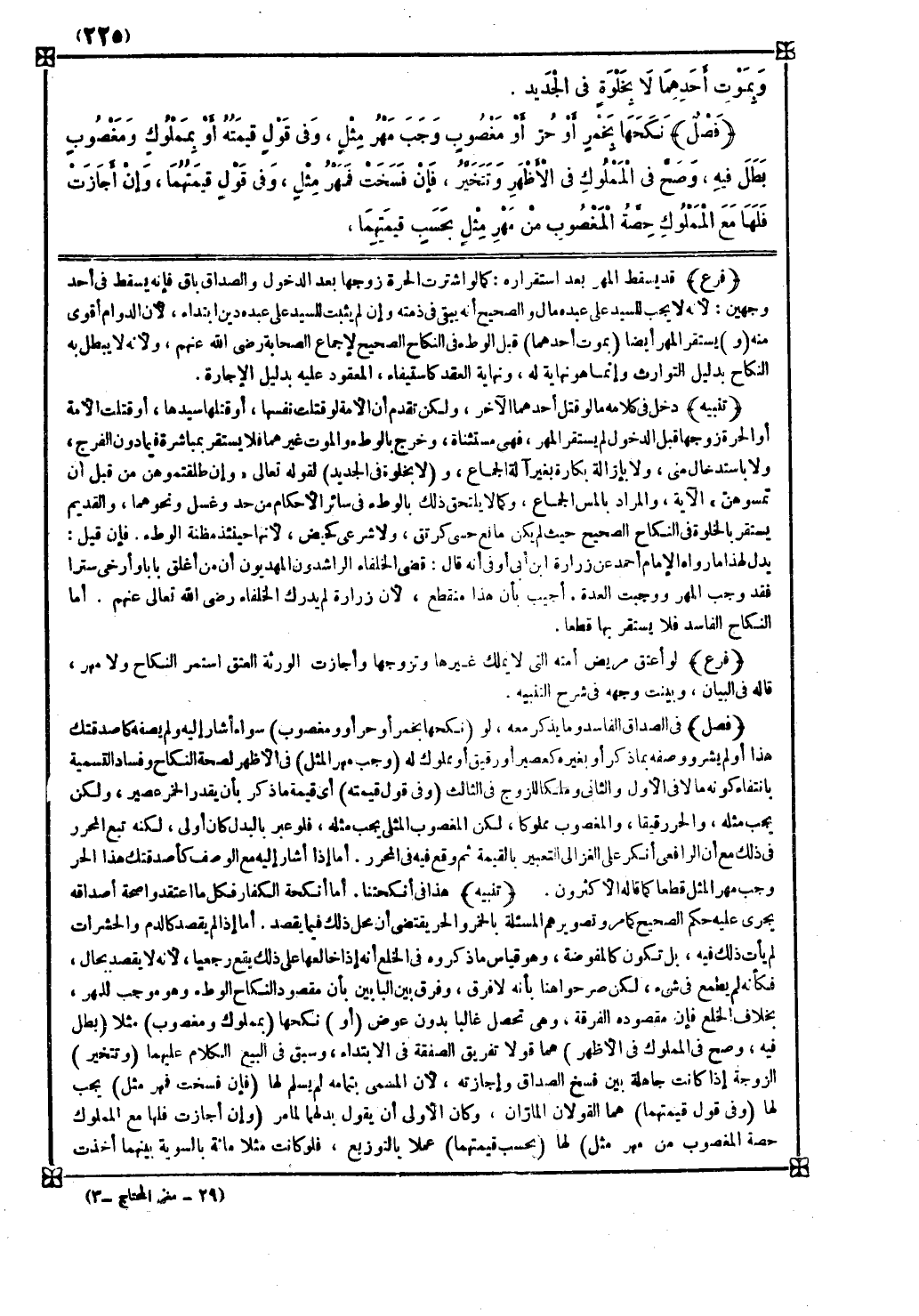 فصل في الصداق الفاسد وما يذكر معه لو ( نكحها بخمر أو حر أو مغصوب ) سواء أشار إليه ولم يصفه ك أصدقتك هذا أو لم يشر ووصفه بما ذكر أو بغيره كعصير أو رقيق أو مملوك له ( وجب مهر المثل ) في الأظهر لصحة النكاح وفساد التسمية بانتفاء كونه ما لا في الأول والثاني وملكا للزوج في الثالث ( وفي قول قيمته ) أي قيمة ما ذكر بأن يقدر الخمر عصير ولكن يجب مثله والحر رقيقا والمغصوب مملوكا لكن المغصوب المثلي يجب مثله فلو عبر بالبدل كان أولى لكنه تبع المحرر في ذلك مع أن الرافعي أنكر على الغزالي التعبير بالقيمة ثم وقع فيه في المحرر