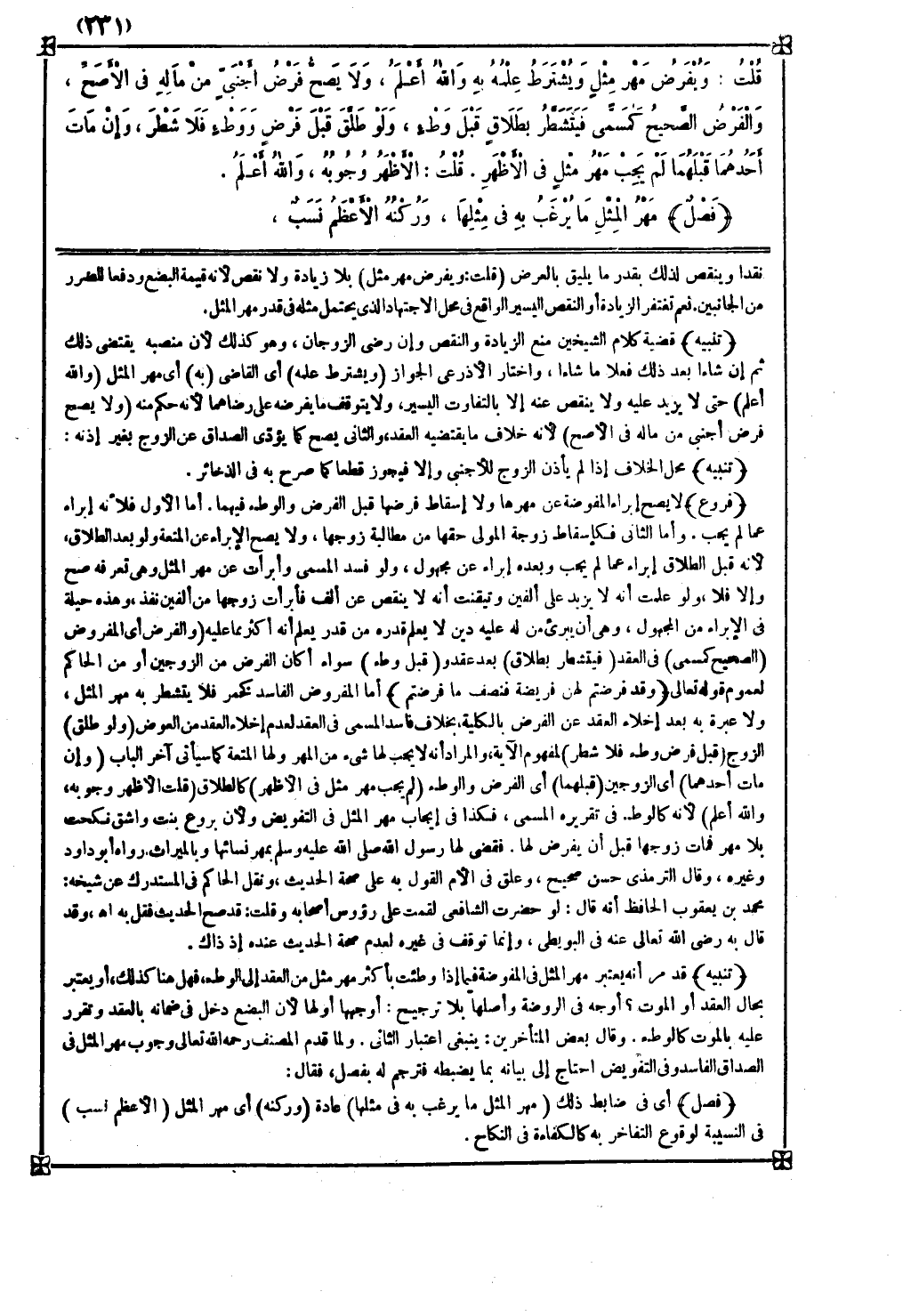 ( قلت ويفرض مهر مثل ) بلا زيادة ولا نقص لأنه قيمة البضع ودفعا للضرر من الجانبين نعم تغتفر الزيادة أو النقص اليسير الواقع في محل الاجتهاد الذي يحتمل مثله في قدر مهر المثل
