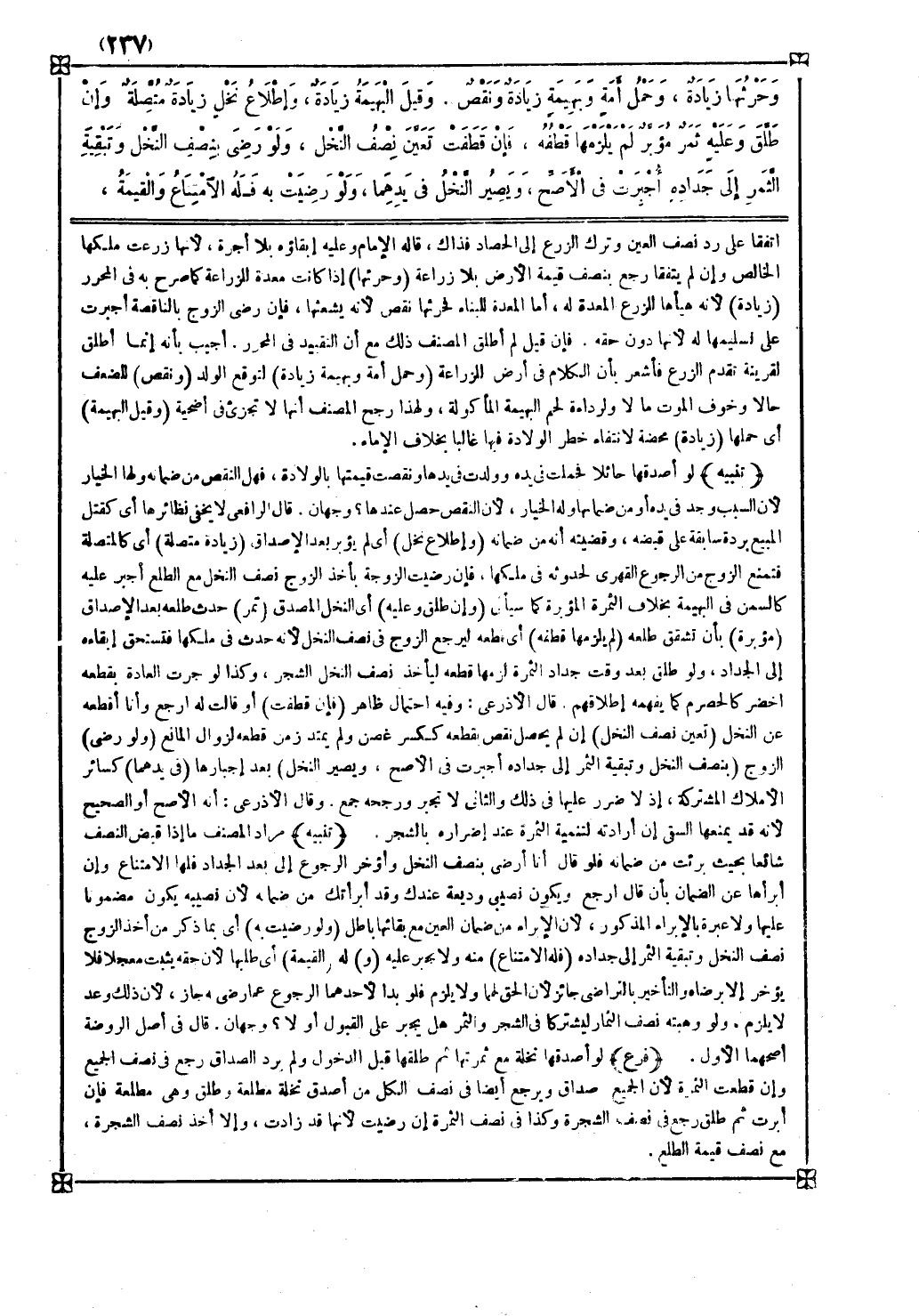 ( وإطلاع نخل ) أي لم يؤبر بعد الإصداق ( زيادة متصلة ) أي كالمتصلة فتمنع الزوج من الرجوع القهري لحدوثه في ملكها فإن رضيت الزوجة بأخذ الزوج نصف النخل مع الطلع أجبر عليه كالسمن في البهيمة بخلاف الثمرة المؤبرة كما سيأتي