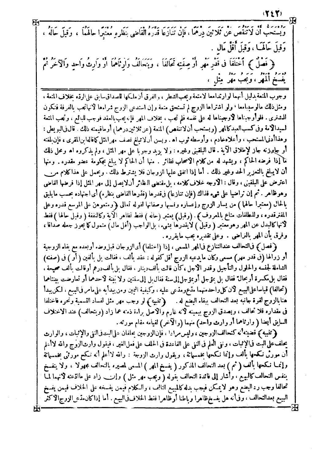 أما إذا اتفق عليها الزوجان فلا يشترط ذلك ويحمل على هذا كلام من اعترض على البلقيني وقال الأوجه خلاف كلامه بل مقتضى النظائر أن لا يصل إلى مهر المثل إذا فرضها القاضي وهو ظاهر