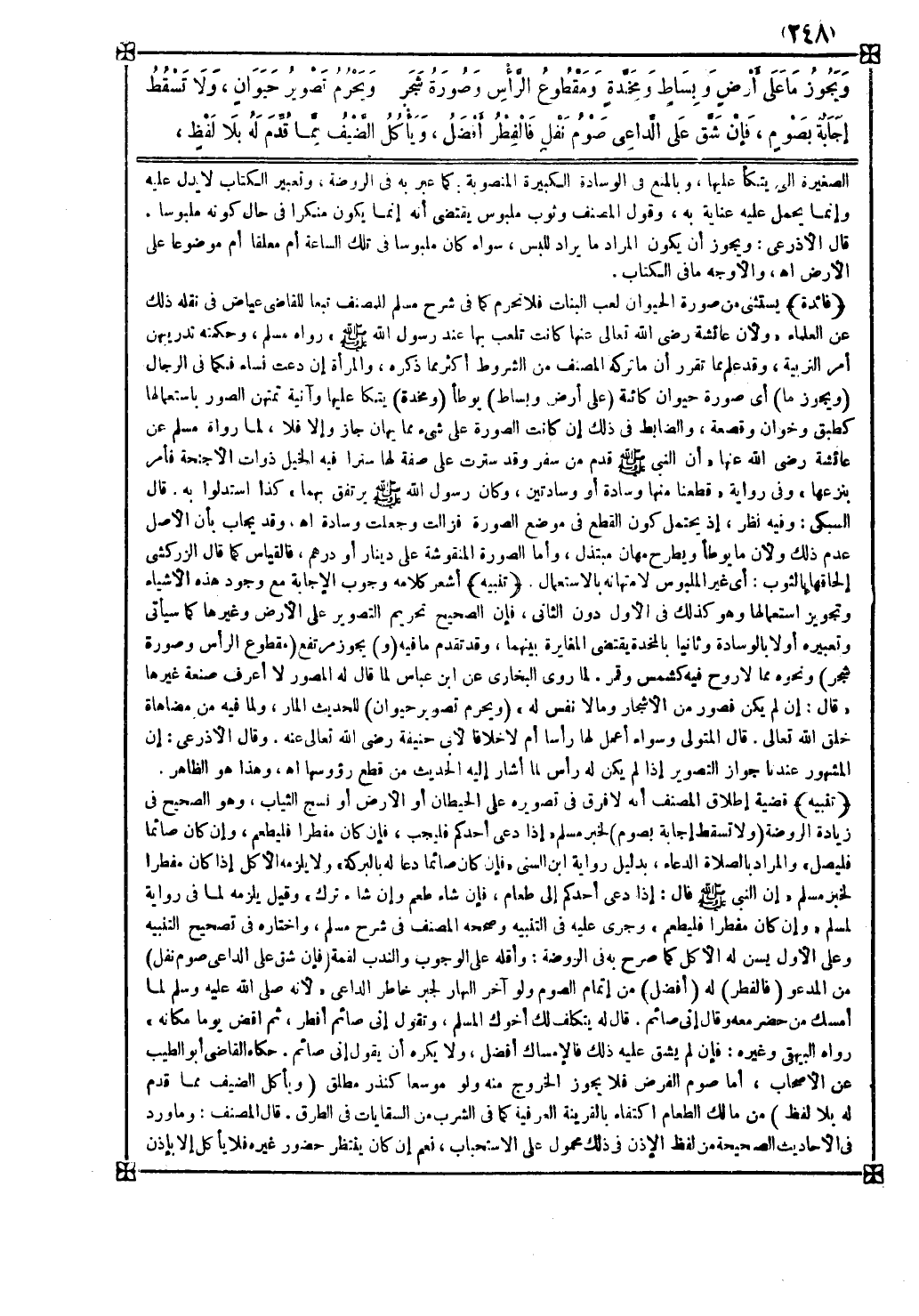 تنبيه قضية إطلاق المصنف أنه لا فرق في تصويره على الحيطان أو الأرض أو نسج الثياب وهو الصحيح في زيادة الروضة