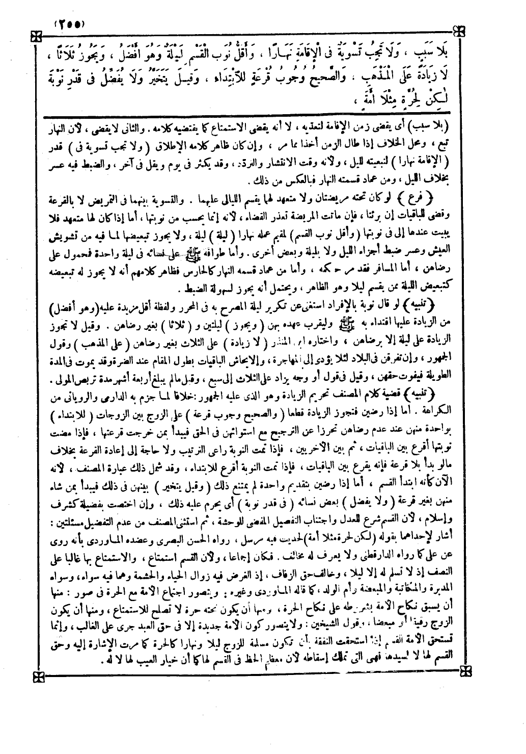 (ولا يفضل) بعض نسائه (في قدر نوبة) أي يحرم عليه ذلك وإن اختصت بفضيلة كشرف وإسلام لأن القسم شرع للعدل واجتناب التفضيل المفضي للوحشة