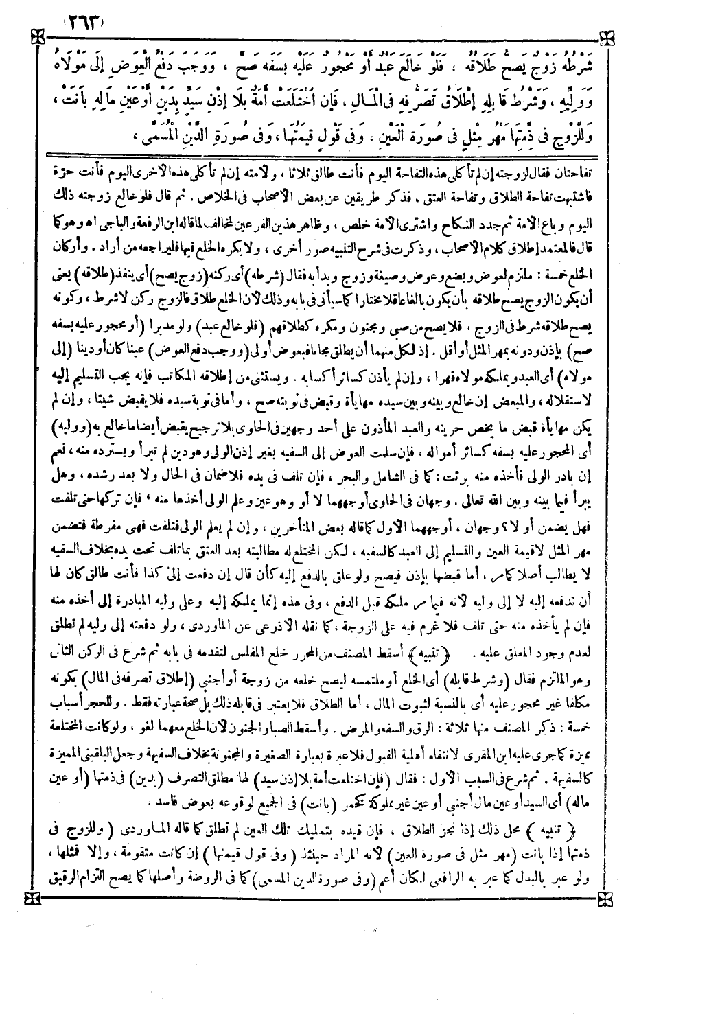وللحجر أسباب خمسة ذكر المصنف منها ثلاثة الرق والسفه والمرض وأسقط الصبا والجنون لأن الخلع معهما لغو ولو كانت المختلعة مميزة كما جرى عليه ابن المقري لانتفاه أهلية القبول فلا عبرة بعبارة الصغيرة والمجنونة بخلاف السفيهة وجعل البلقيني المميزة كالسفيهة