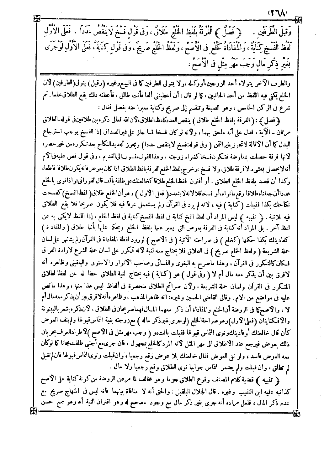 تنبيه ليس المراد أن لفظ الفسخ كناية في لفظ الخلع إذ اللفظ لا يكنى به عن لفظ آخر بل المراد أنه كناية في الفرقة بعوض التي يعبر عنها بلفظ الخلع ويحكم عليها بأنها طلاق