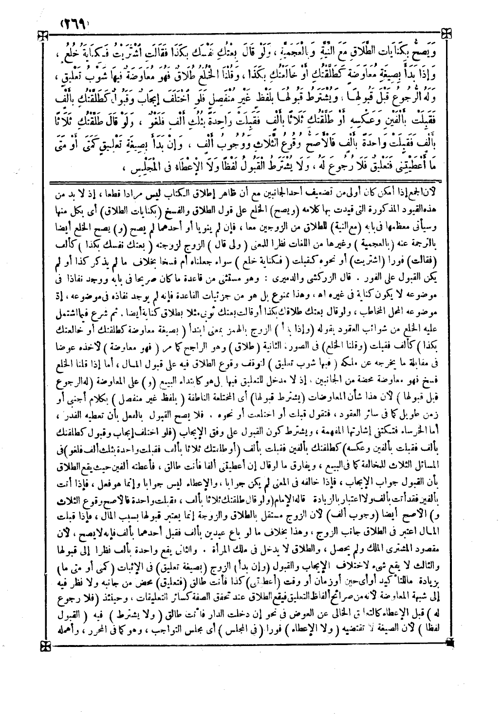 ثم شرع فيما اشتمل عليه الخلع من شوائب العقود بقوله ( وإذا بدأ ) الزوج بالهمز بمعنى ابتدأ ( بصيغة معاوضة كطلقتك أو خالعتك بكذا ) كألف فقبلت ( وقلنا الخلع ) في الصورة الثانية ( طلاق ) وهو الراجح كما مر ( فهو معاوضة ) لأخذه عوضا في مقابلة ما يخرجه عن ملكه ( فيها شوب تعليق ) لتوقف وقوع الطلاق فيه على قبول المال أما إذا قلنا الخلع فسخ فهو معاوضة محضة من الجانبين إذ لا مدخل للتعليق فيها بل هو كابتداء البيع