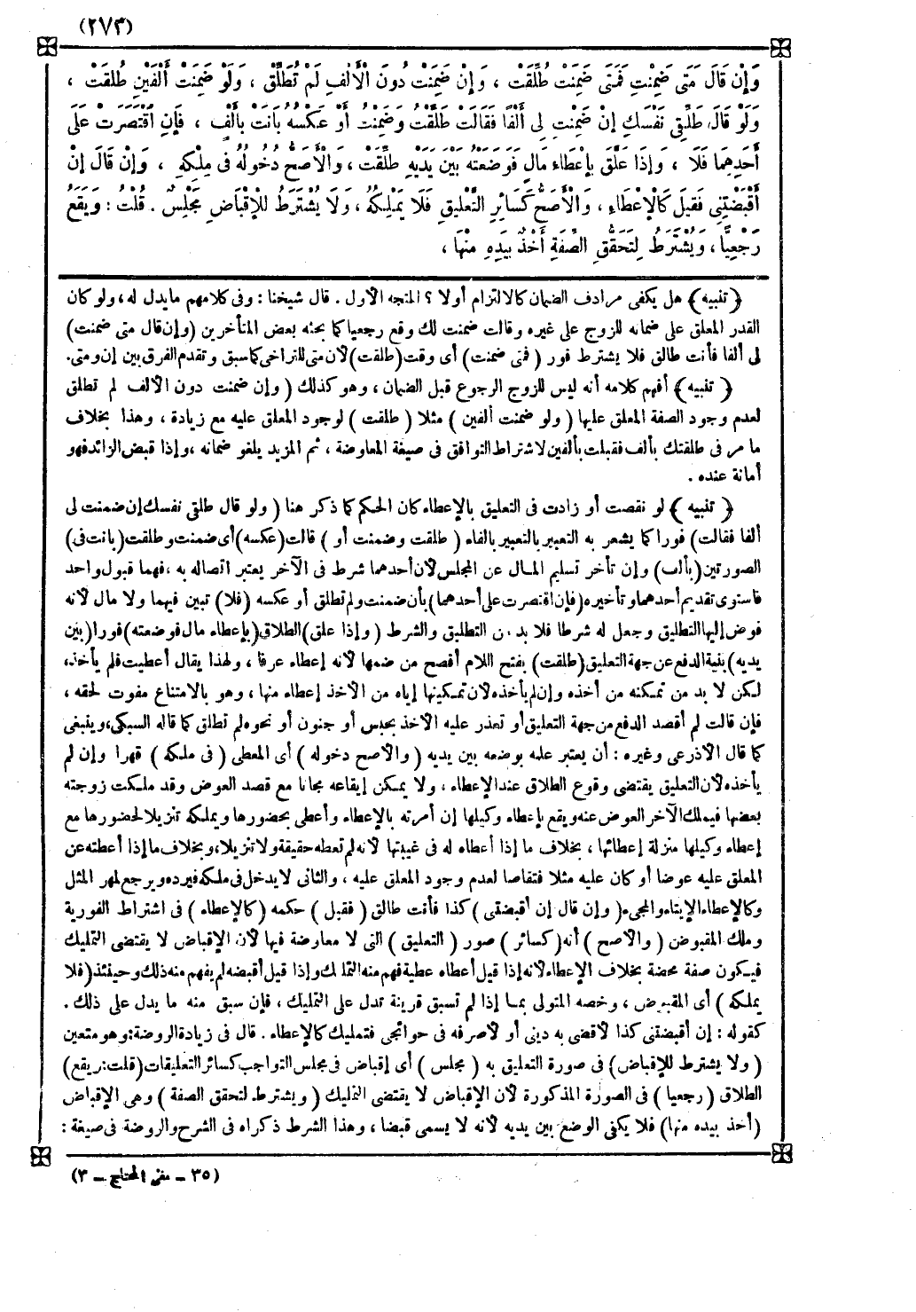 قال شيخنا وفي كلامهم ما يدل له ولو كان القدر المعلق على ضمانه للزوج على غيره وقالت ضمنت لك وقع رجعيا كما بحثه بعض المتأخرين