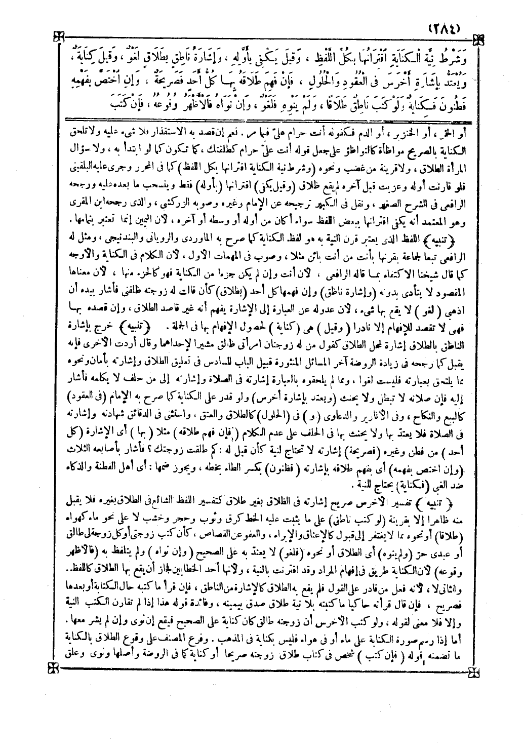 تنبيه خرج بإشارة الناطق بالطلاق إشارة لمحل الطلاق كقول من له زوجتان امرأتي طالق مشيرا لإحداهما وقال أردت الأخرى فإنه يقبل كما رجحه في زيادة الروضة آخر المسائل المنثورة قبيل الباب السادس في تعليق الطلاق وإشارته بأمان ونحوه مما يلتحق بعبارته فليست لغوا ومما لم يلحقوه بالعبارة إشارته في الصلاة وإشارته إلى من حلف لا يكلمه فأشار إليه فإن صلاته لا تبطل ولا يحنث