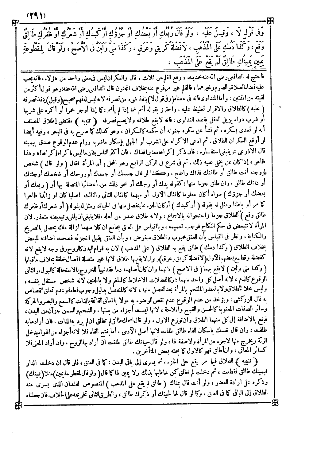 ولا بالمعاني القائمة بالذات كالسمع والبصر والحركة وسائر الصفات المعنوية كالحسن والقبح والملاحة لأنها ليست أجزاء من بدنها والشحم والسمن جزءان من البدن فيقع بالإضافة إلى كل منهما الطلاق وإن توزع الأول
