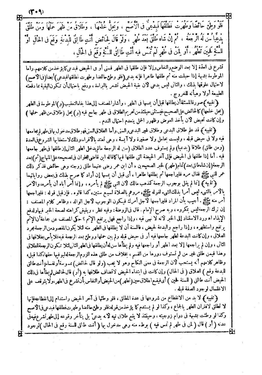تنبيه قد علم طلاق البدعي وطلاق غير البدعي والسني وأما الطلاق السني فهو طلاق مدخول بها في طهر لم يجامعها فيه ولا في حيض قبله وليست بحامل ولا صغيرة ولا آيسة وهي تعتد بالأقراء وذلك لاستعقابها الشروع في العدة