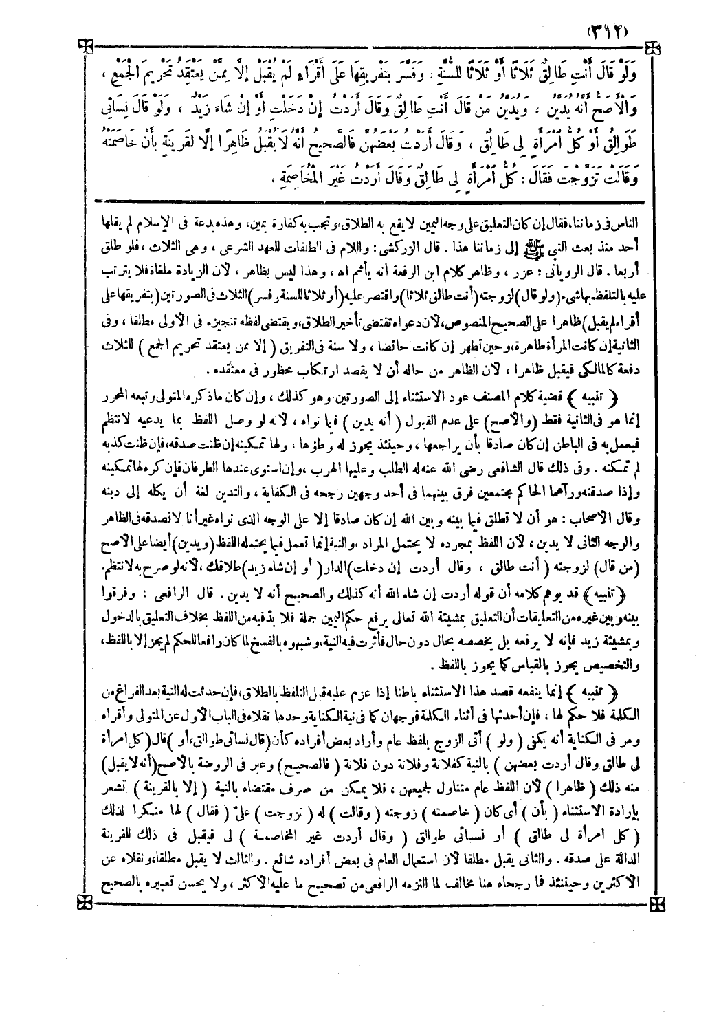 الناس في زماننا فقال إن كان التعليق على وجه اليمين لا يقع به الطلاق وتجب به كفارة يمين وهذه بدعة في الإسلام لم يقلها أحد منذ بعث النبي صلى الله عليه وسلم إلى زماننا هذا