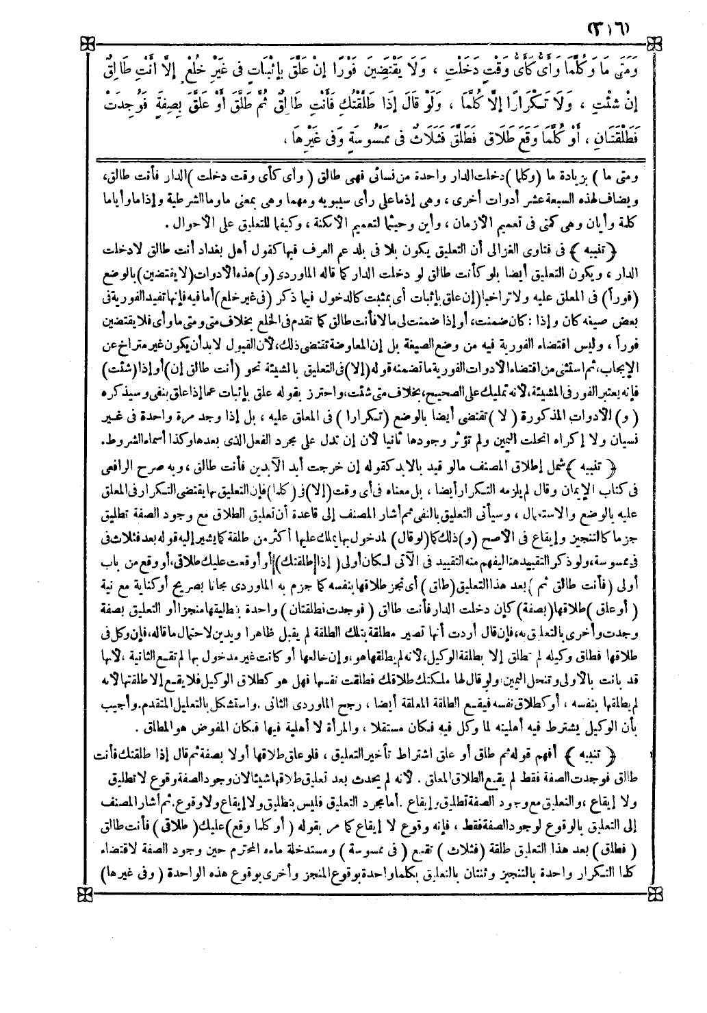 تنبيه في فتاوى الغزالي أن التعليق يكون ب لا في بلد عم العرف فيها كقول أهل بغداد أنت طالق لا دخلت الدار ويكون التعليق أيضا ب لو كأنت طالق لو دخلت الدار كما قاله الماوردي