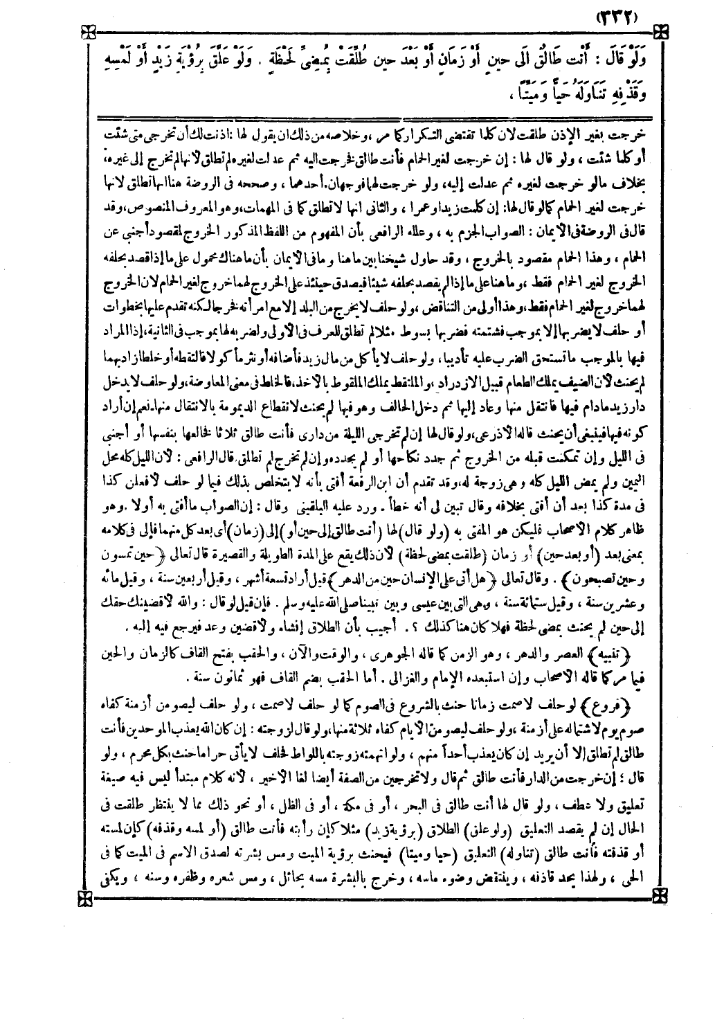 ( ولو قال ) لها ( أنت طالق إلى حين أو ) إلى ( زمان ) أي بعد كل منهما ف إلى في كلامه بمعنى بعد ( أو بعد حين ) أو زمان ( طلقت بمضي لحظة ) لأن ذلك يقع على المدة الطويلة والقصيرة قال تعالى { حين تمسون وحين تصبحون } وقال تعالى { هل أتى على الإنسان حين من الدهر } قيل أراد تسعة أشهر وقيل أربعين سنة وقيل مائة وعشرين سنة وقيل ستمائة سنة وهي التي بين عيسى وبين نبينا صلى الله عليه وسلم