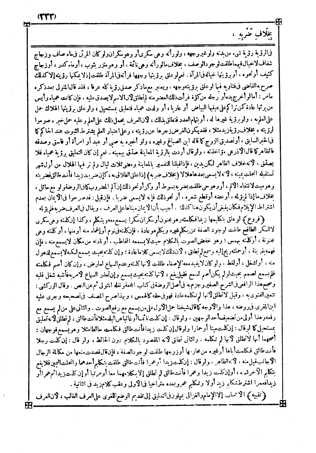 ولو علق برؤيتها الهلاك حمل على العلم به ولو برؤية غيرها له أو بتمام العدد فتطلق بذلك لأن العرف يحمل ذلك على العلم وعليه حمل خبر صوموا لرؤيته بخلاف رؤية زيد مثلا فقد يكون الغرض زجرها عن رؤيته