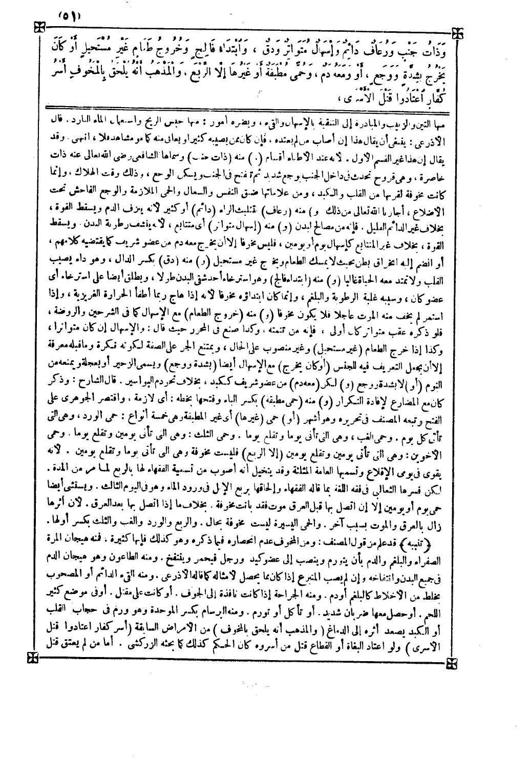ومنه الجراحة إذا كانت نافذة إلى الجوف أو كانت على مقتل أو في موضع كثير اللحم أو حصل معها ضربان شديد أو تأكل أو تورم